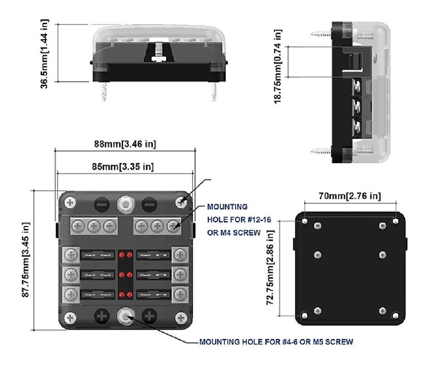 Tipo de artículo: caja de fusibles de 6 vías con luces LED